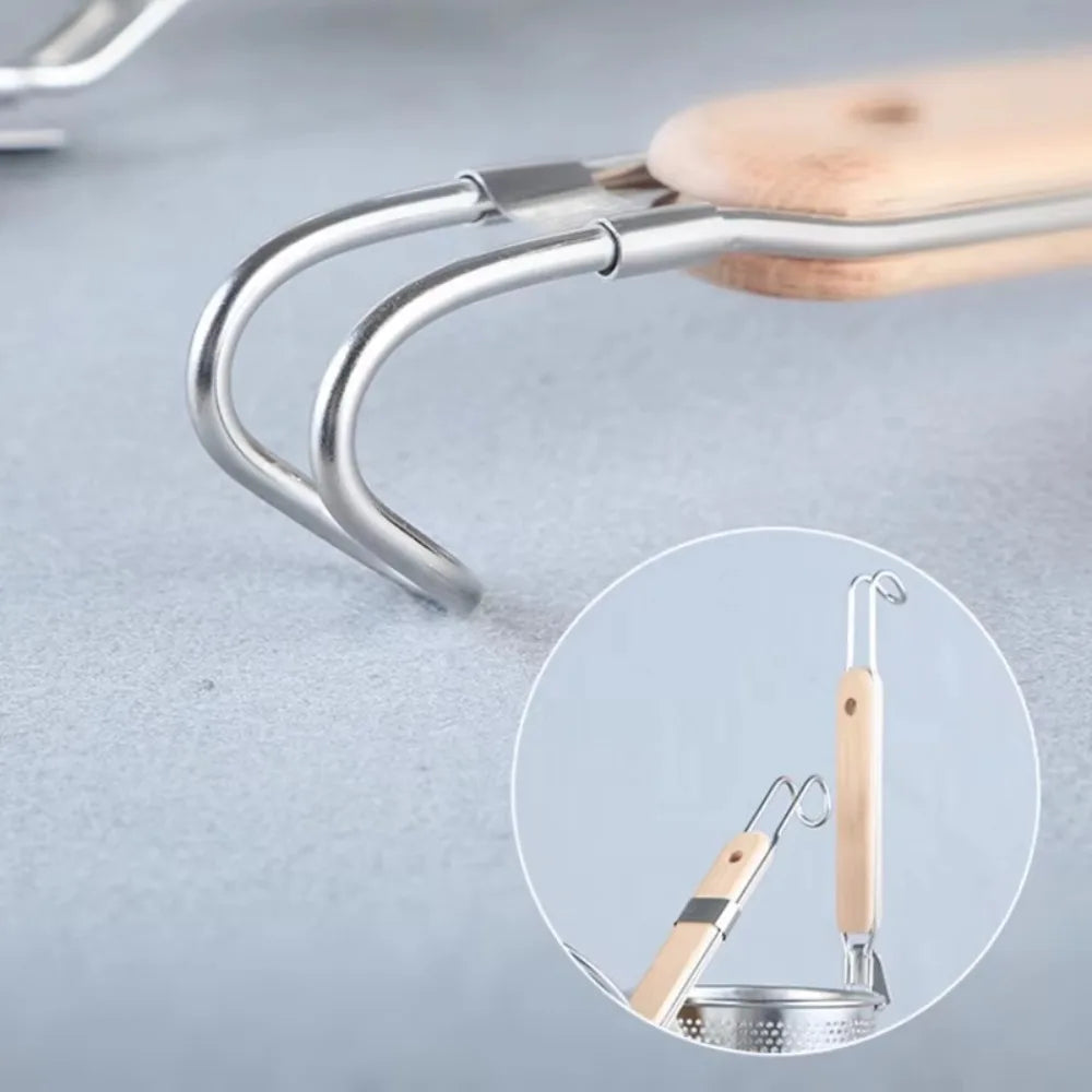 Thickened Stainless Steel Funnel Wooden Handle Pasta Basket Strainer