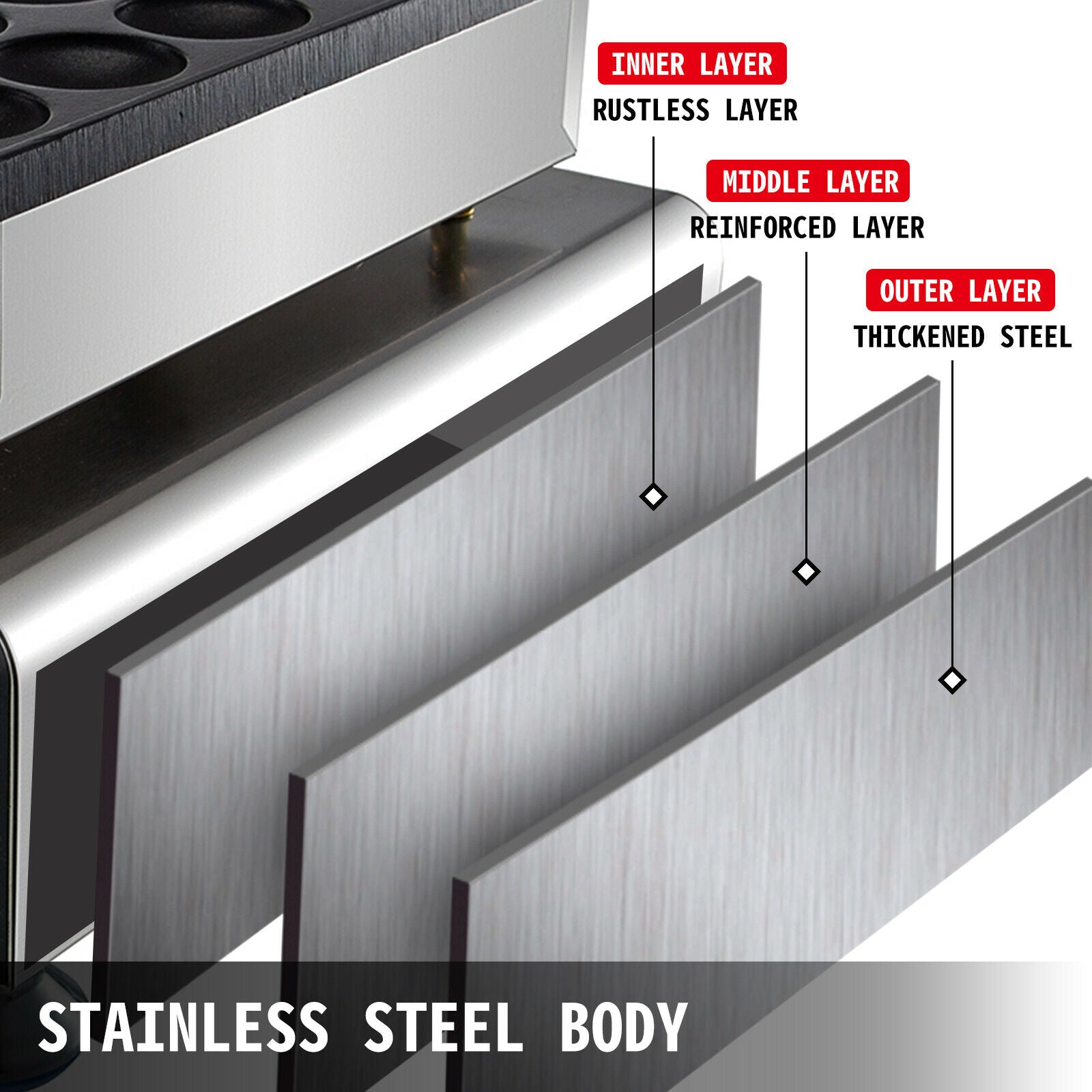 - HEAVY-DUTY MATERIAL - This commercial pancake maker adopts a high-quality food-grade stainless steel body and a non-stick cast-iron plate. Sanitary and durable.