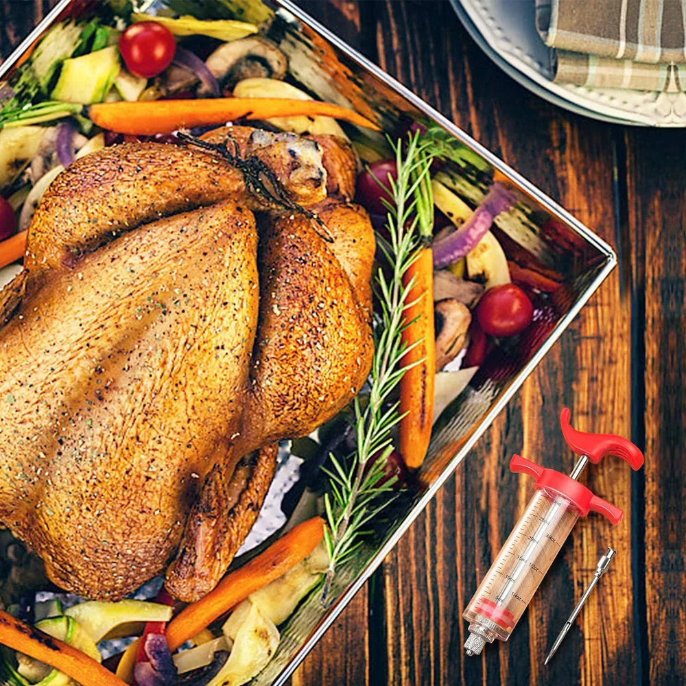 Infuse rich flavor deep into your meats with the Kitchen Groups Turkey Meat Injector Syringe with 3 Marinade Injector Needles. Whether you're prepping a Thanksgiving turkey, BBQ brisket, or juicy roast chicken, this easy-to-use marinade injector ensures every bite is tender, moist, and packed with flavor.