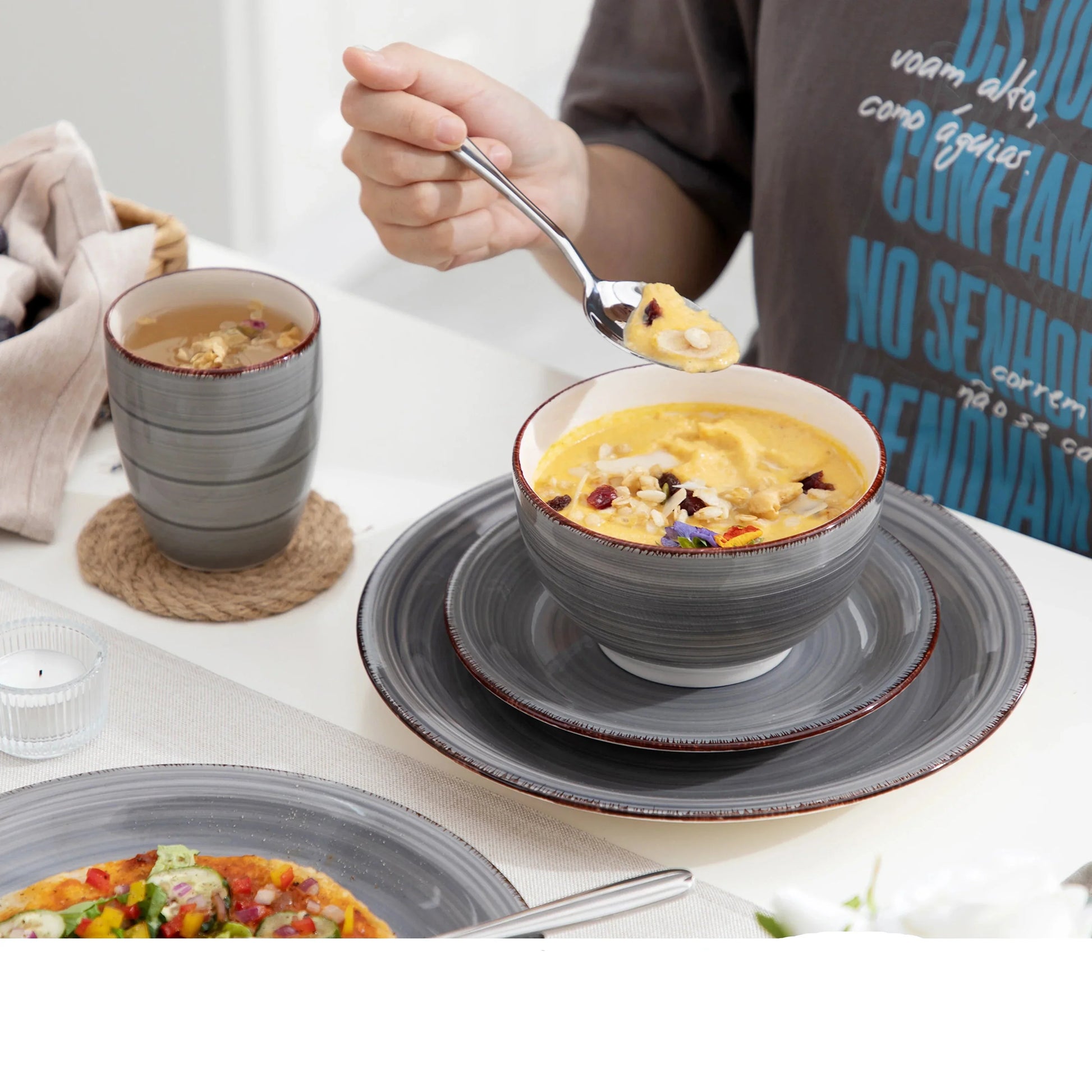 Upgrade your dining table with the Vintage Ceramic Tableware with Dinner Plate Dessert Plate Bowl Mug Set from Kitchen Groups, offering a timeless design and modern functionality. Available in 16-piece, 32-piece, or 48-piece sets, it’s perfect for serving 4, 8, or 12 people. Each set includes dinner plates, dessert plates, large 800ml bowls, and mugs — ideal for everyday meals and special occasions.